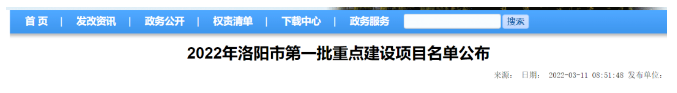 關於(yú)項目具體內容未見具體報道,但(dàn)是,3月11日,洛陽市(shì)發改委公布《2022年洛陽市第一批重點建設項目名單》。