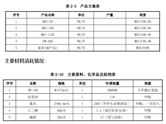 產品方案:項目主要分離MDI產品,包括MDI-50、MDI-100、MDI-1102、PM-200及(jí)副產品氯苯。