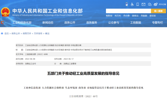 五部(bù)門關於推動輕工業高質量發展的指導意見