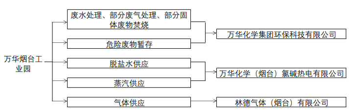 項目位於煙台化工產業園萬華煙台產業園(yuán)內(nèi),園區(qū)內企業主要包含萬華化學集團股份有限公司、林德氣體(煙台)有限公司、萬華化學(煙台) 氯(lǜ)堿熱電有限公司、萬華化學集團環保科技有限公司、萬華化(huà)學(煙台)容威聚氨酯有限(xiàn)公司等。林德氣體(煙台)有限公司為萬華化學集團公司提供氮(dàn)氣和(hé)空氣;萬華化學(煙(yān)台)氯(lǜ)堿熱電有限公司為萬華化學集團公(gōng)司提供蒸汽;萬華化學集團(tuán)股份有限公司、萬華化學(煙台)氯堿熱電有限公司熱電工廠、萬華化學(煙台)容威聚氨酯有(yǒu)限公司廢水、固廢、廢氣等主要委托萬華環保科技處理。各公司獨立管理,單獨申請排汙許可證(zhèng)。