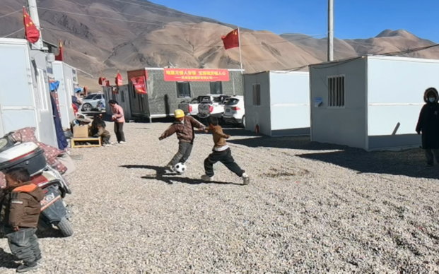 板房外,一群小孩踢著足球,幾個穿藏袍的女人看著他們嬉鬧(nào)。達瓦的小兒子拉巴頓珠玩累了,進屋撕開一個大碗麵,普布吉宗給他倒上開水,又拿出煮熟的(de)土豆給他吃。看到記者離開,小家夥揮手道“拜拜”。