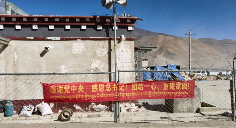 在嘎旦村黨群服務中心外,“感謝黨中(zhōng)央!感恩總書記!團(tuán)結一心、重建家園!”的橫幅在風中獵獵作響。村黨支(zhī)部書記吳堅加布、村(cūn)委會(huì)主任頓珠正帶(dài)人搬運礦泉水等救災物資。記者尋到現場(chǎng)時,看到他們眼睛裏都布(bù)滿血(xuè)絲。