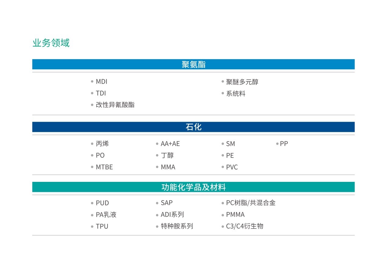 產品類(lèi)別:聚氨(ān)酯、石化、功能化學品及材料