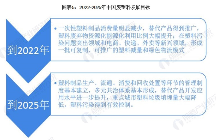 2020年1月,國家發展改革委和生態環境(jìng)部就聯合發布了《關於進一步加強塑料汙染治理的意見(jiàn)》,從塑料廢棄物的回收、清運和利用(yòng)等方麵提出具體的發展建議,並提出到2022年和2025年我國廢塑料的發(fā)展目標。