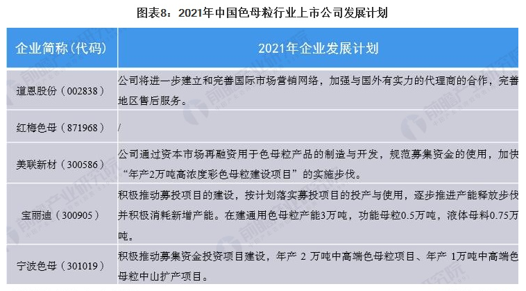 目前,我國色母粒行業上市公司發(fā)展以產能(néng)擴張項(xiàng)目建設為主,其中(zhōng)2021年美聯新材、寶麗(lì)迪以及寧波色母均將持續推進色母粒建設項目。