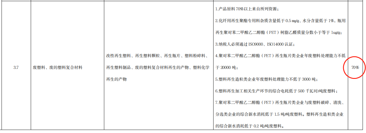 3.7 廢塑料、廢的塑料複合材料(liào):退稅比例70%;