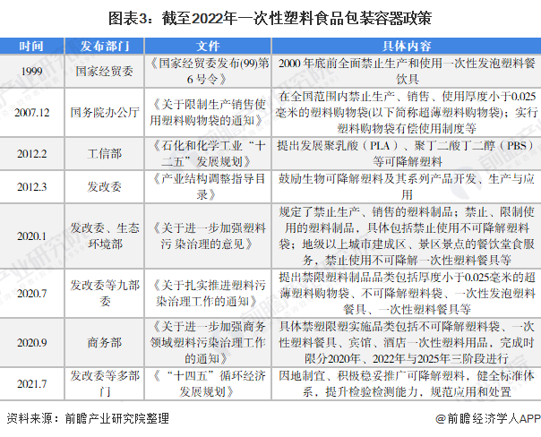 1999年,我國推出(chū)“限塑令”《國家經貿委發布(99)第6號令》,提(tí)出2000年底前全麵禁止生產和使用一次性發泡塑料餐(cān)飲具;2007年,國務院(yuàn)《關(guān)於限製生產銷售使用塑料購物袋的通知》提出在全國範(fàn)圍(wéi)內禁止生產、銷售、使用厚度小於(yú)0.025毫米(mǐ)的塑料購物袋、實行(háng)塑料購物袋有(yǒu)償使用製度等。2020年以來,有關一次性塑料(liào)食品(pǐn)包裝(zhuāng)的政策密集出台,主要內容為限製、禁止不可降(jiàng)解塑料製品的使用。2021年,《“十四五”循環經(jīng)濟發展規劃》提出因地製宜、積(jī)極穩妥推廣可降解(jiě)塑料: