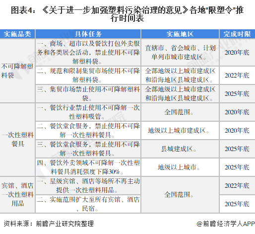 從限塑令推行時間來看,對直轄市、省會城市、計劃單列市城市建成(chéng)區限塑的推行力度更(gèng)強,根據《關於進一步加強商務領域塑(sù)料汙染治理工作的通知》,至2020年底,商場、超市以及餐(cān)飲打包外賣服務和各類展會活動禁止使用不可降解塑料袋;餐(cān)飲行業禁止使用不可降解一次性(xìng)塑料吸管;餐飲堂食服務禁止使用不可降解一次性塑料餐具。