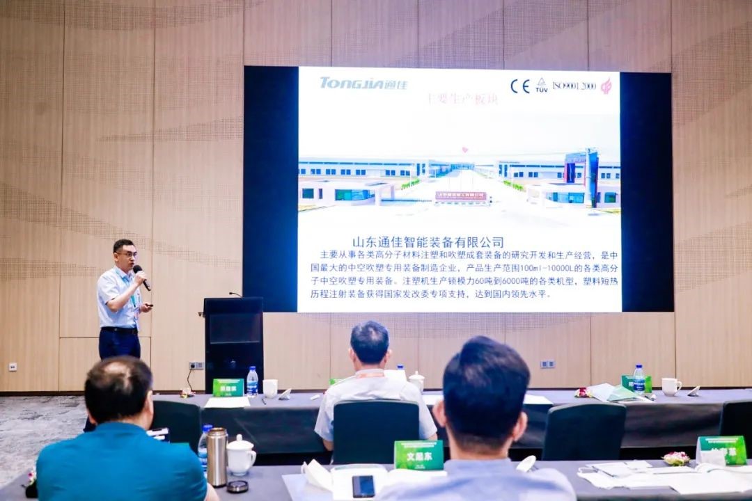 山(shān)東通佳(jiā)機械(xiè)有限公司總經理李勇作《生物降解材料(liào)輕量化工藝技術裝備(bèi)研究進展》報告,李勇總經理就向大家分(fèn)享了山東通佳機械有限(xiàn)公司推出的一係列生物基(jī)環境友好高分子材料專用裝備,重點介紹(shào)了PLA超臨界CO2發泡片材生產技術與裝備,PLA發泡(pào)質量控製的要點。