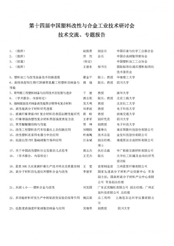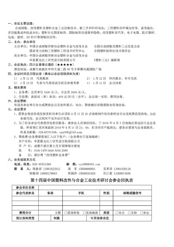 关(guān)于召开第十四届中国塑料改性与合金工业技术研讨会(huì)