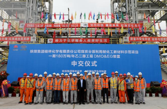 4月28日,中國化學所屬東華公(gōng)司(sī)總承包(E+PC)的陝煤集團榆(yú)林化學(xué)有限責任公司煤炭分質利用(yòng)製化工新材料示範項目一期(qī)180萬噸(dūn)/年乙二醇工程乙(yǐ)二醇裝置項目舉行中交儀式。