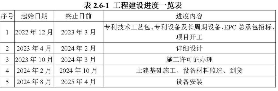 表 項目建設裝置及(jí)工藝路線