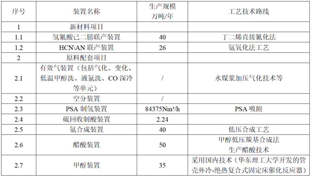根據環評文件,公司將投資137.9億,新建40 萬噸/年己二腈(jīng)、26 萬噸/年丙烯腈、28 億標方/年合(hé)成氣、35 萬噸/年甲醇(chún)、50 萬噸/年醋酸、6.75 億Nm³/年(nián)氫氣、13 萬Nm³/小時氧氣空(kōng)分裝置及其他配套公用和環保工程。項目占地麵積1142000 ㎡,公司依托天辰(chén)公司自主(zhǔ)知識產權的“丁二烯直接氰化法”国产精品免费福利己二腈技術,依(yī)托園區丁(dīng)二烯抽提裝置(zhì)提供的丁二烯,新建40 萬噸/年的己二腈裝置以(yǐ)及26 萬噸/年丙烯(xī)腈,以滿足國內(nèi)市場對己二腈的大量需求。
