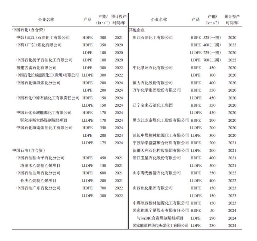 1、2022年中國聚(jù)乙烯裝(zhuāng)置擴能計劃(huá)