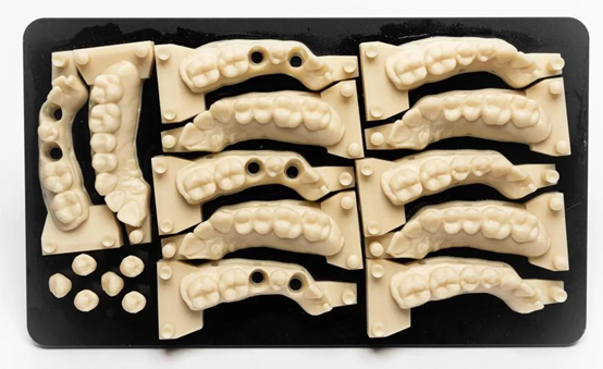 Origin One Dental樹脂材料(liào)可簡化生產流程,降低(dī)成本。(圖片來(lái)自Stratasys