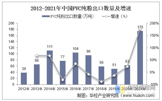 2021年,受國外貨源供(gòng)應緊張且價(jià)格持續上漲支(zhī)撐,中國PVC出口量明顯增(zēng)加(jiā),但遠洋運力緊張的矛盾在下半年較(jiào)為突出,限製中國PVC出口量(liàng)的進(jìn)一步增長。數據顯示,2021年(nián)全(quán)年,我國PVC純粉累計出口(kǒu)數(shù)量達175.4萬噸,同比上升177.8%。