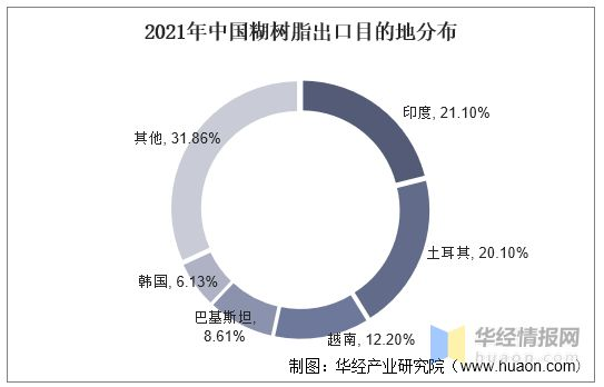 2021年國內累(lèi)計出口糊樹脂7.7萬噸,其(qí)中,2021年出口印度(dù)1.63萬(wàn)噸(dūn),占總出口量的21.1%;出口土耳其1.55萬噸,占比20.1%;出口越南(nán)0.94萬噸,占比12.2%。