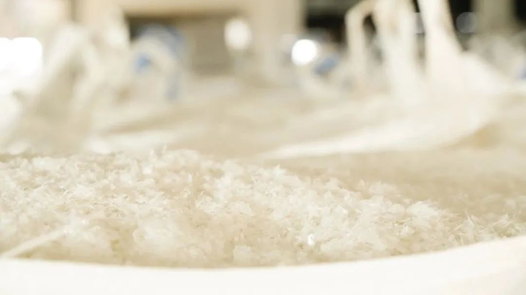 經過初次的破碎-清洗-分選後(hòu)的塑(sù)料瓶片已經看起來非常均勻統一了,但(dàn)是仍然會有一些異類沒有被完全(quán)剔除,需要更精細化的清洗和分選。在(zài)這裏威立雅華菲的塑料(liào)回收工廠會將這些瓶片進行高溫清洗,進一步去(qù)除雜質,光學分選機則再次上場進行精細的分選。由此,塑(sù)料(liào)瓶已經變成了非常純粹的瓶片,純度可以達到99%。