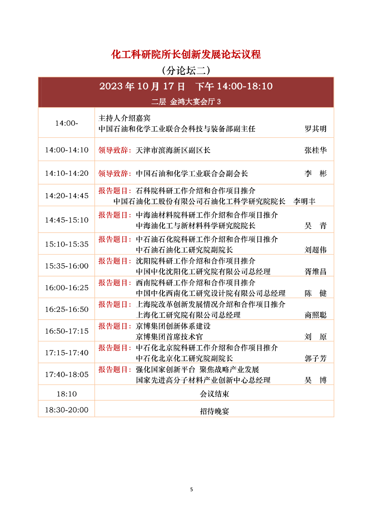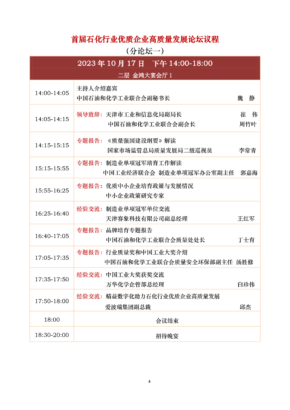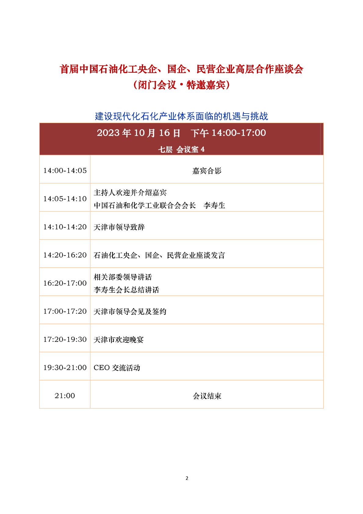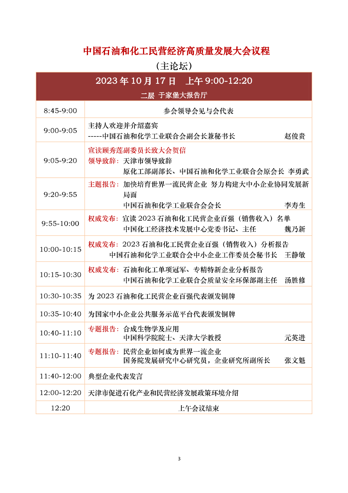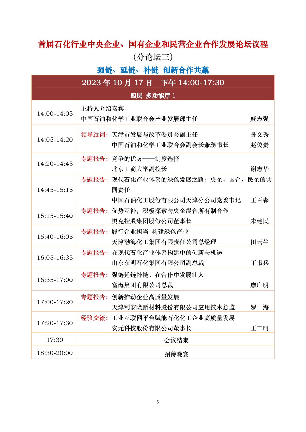 中国石油和化工(gōng)民营经济高质(zhì)量发展大会 会议议程