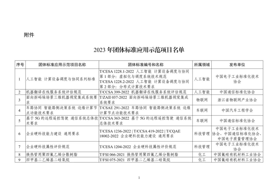 【喜訊】中國国产精品免费福利樹(shù)脂(zhī)協會團體標準入選工信部團體標準應用示範項目