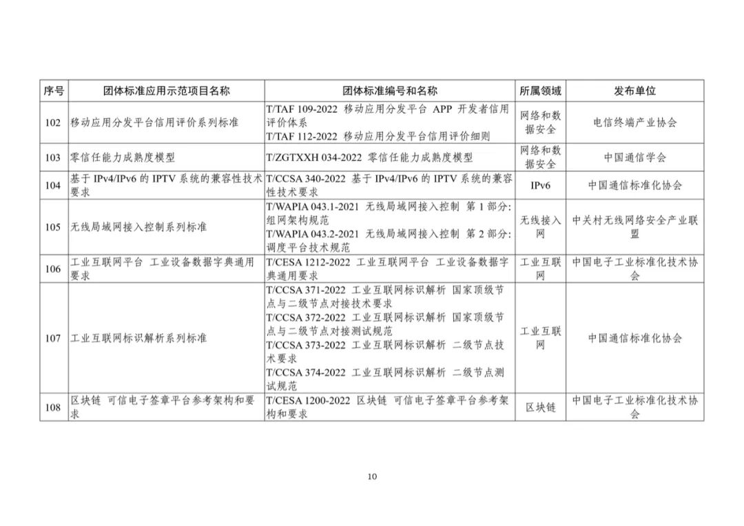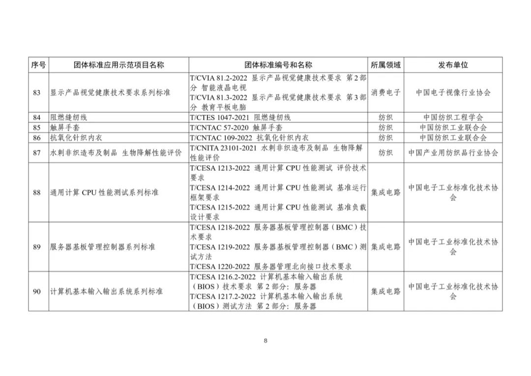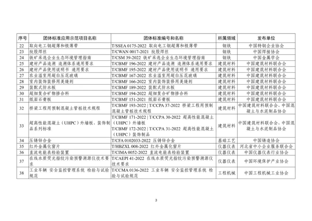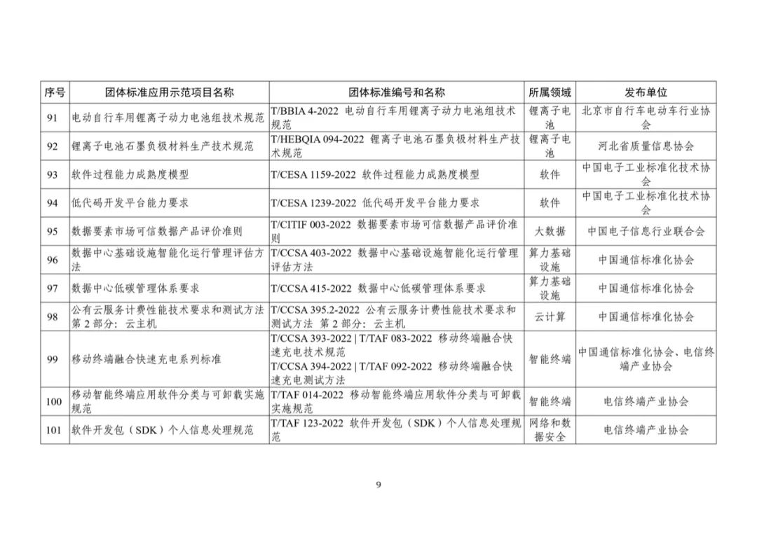 為深入貫徹落(luò)實《國家標準(zhǔn)化發展(zhǎn)綱要》,大力發展團體標準,推進團體標準應用示範,根據《工業和信息化部辦公廳關於開展2023年百項團體標(biāo)準應用示(shì)範項目申報工作的通知》(工信廳科函〔2023〕165號(hào))要求,經自願申報、地方或行業推薦、專(zhuān)家審查和社會公示等(děng)環節,我部遴選出109項2023年團體標準應用(yòng)示範項(xiàng)目(名單見附(fù)件),現予以公(gōng)布。