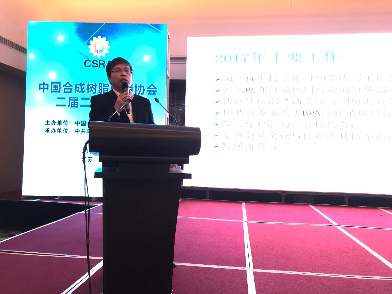 聚碳酸(suān)酯分会秘书长段庆生做《聚(jù)碳酸酯(PC)分会工(gōng)作简报》